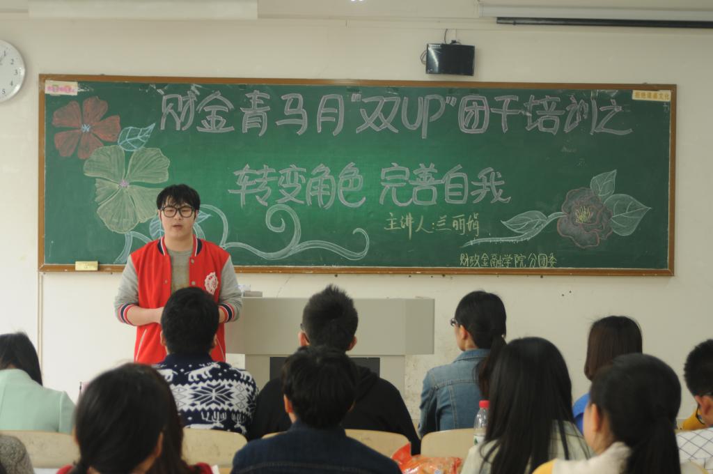 ,财政伟德国际1946于07212教室举行了以“转变角色,完善自我”为主题的财金青马月之“双UP”团干培训。此次培训会由分团委书记兰丽娟老师召开,财金员工会各部门部长参加培训。