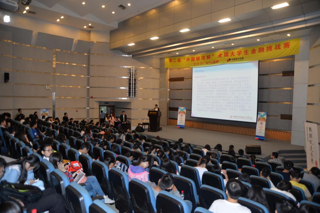 大会伊始,刘代成副书记首先发言。他强调了社会适应能力的重要性,提出要将理论运用于实践,鼓励大家在本次大赛中提升自己的研判和实验能力。魏庆孔总经理从关于我们、对平台的看法、本次大赛对同学们的影响三个方面介绍了银河证券公司校园招聘事宜,在他看来,竞赛是择业方式的转变,对同学们就业方向的选择具有重要意义。张永红经理则着重介绍了本次大赛的细则。