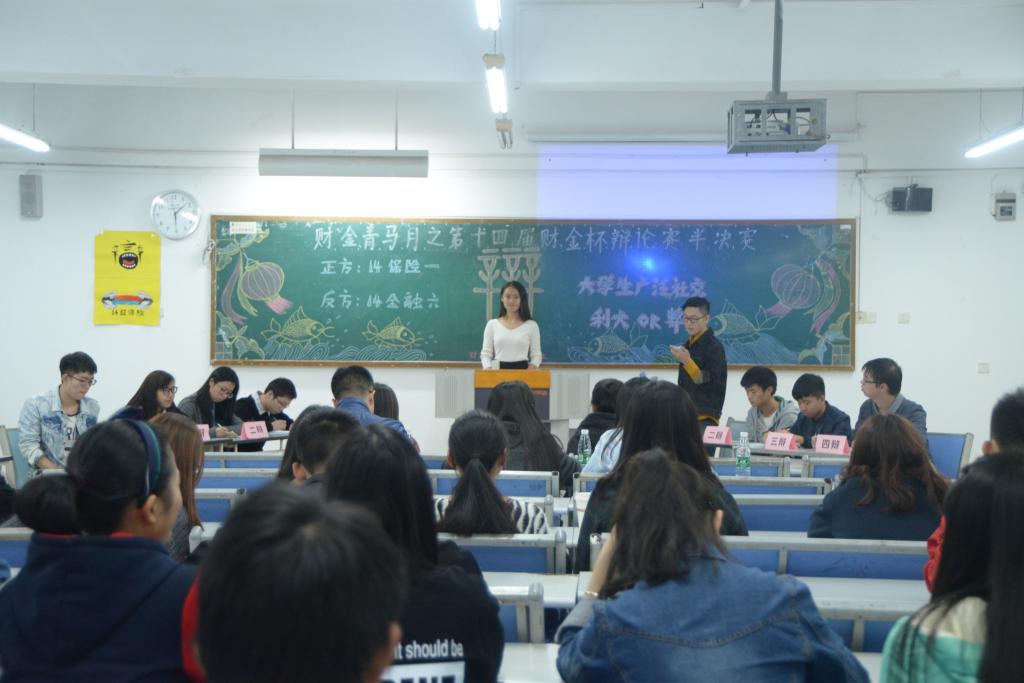 经双方自我介绍后,两场言语之间的硝烟战火打响。两场辩论赛的正方均打出培养社交能力是老员工需面对的也需提高的社会能力,就其重要性简洁明了地阐述了自己的观点;同时投资一班、金融六班所代表的反方从广泛社交会影响学习,消耗精力,减少专业研究时间等不利结果反驳,通过“广泛社交之人如无水之鱼,无根之木”、“横向的宽度必然会导致纵向的不足”等论据进行一一剖析。在唇枪舌战中,气氛被推向高潮,观众的心也一步一步被抓紧。到驳论与自由辩论环节,双方更是针锋相对,一方提问紧逼,一方也答辩巧舌如簧,一问一答,一辩一争,无不体现其思维的敏捷
