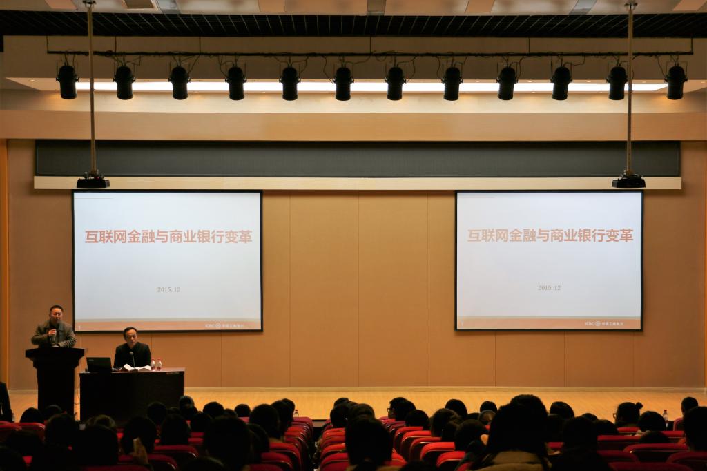 在“互联网+”产业一片向好的大背景下,互联网金融更是迎来前所未有的发展契机,互联网与金融行业的紧密结合,将使互联网应用能力成为老员工必备技能。韩行长从专业的视角对金融的本质与发展进行了深入分析,引入淘宝案例,讲解互联网金融的发展、跨界、高效三大模式,通过比较银行业在互联网的影响下面临的种种风险与冲击,说明银行业与互联网金融共发展的重要的重要性以及银行业改革的迫切。韩行长以跨境电商、手机银行等实例的介绍,让同学们感受到网络与实体经济有效结合为生活带来的便捷与精彩。在“工银e校园”体验活动中,与会同学通过实际操作体验互联网金融产品,更加直观地体会互联网金融与商业银行的变革。