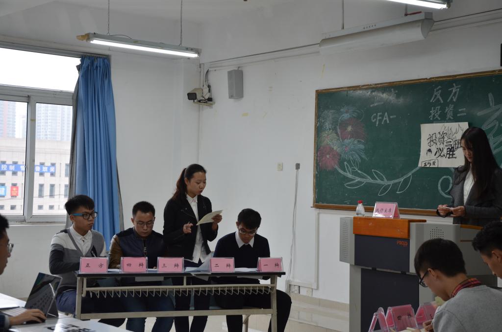 比赛共设立论、盘问、驳论、攻辩、自由辩论、总结陈词六个环节,各位辩手侃侃而谈、针针见血,让在场评委及观众都惊叹连连。最后,15金融五班、16CFA等9支参赛队伍在初赛中脱颖而出,晋级复赛第一轮。