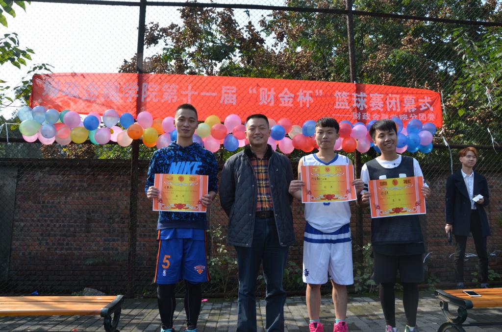 随后,进行了篮球赛的闭幕式,刘代成书记和徐阔老师为获奖队伍和优秀球员颁奖。至此,历时44天的财政伟德国际1946第十一届“财金杯”篮球赛在阵阵掌声和欢呼声中落下帷幕。