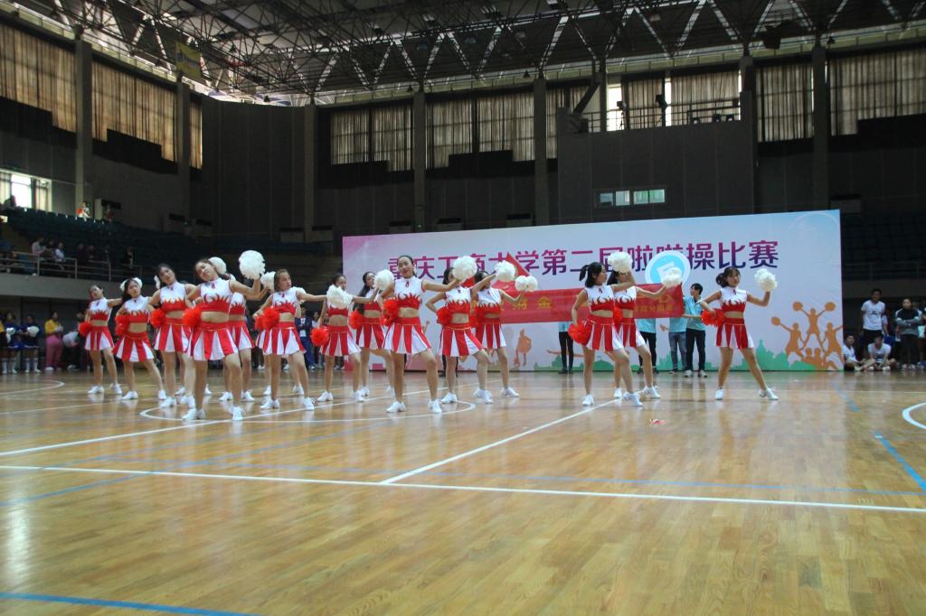 11月18日下午2点,在南岸校区体艺馆内举办了重庆工商大学第二届啦啦操比赛,重庆工商大学董事长孙芳城、党委副书记纪委书记周航、校团委副书记杨娟、体育公司经理兼党总支书记刘芳、体育公司副经理范文杰等领导出席本次活动。来自各公司的共20支参赛队伍齐跳啦啦操为比赛拉开序幕。