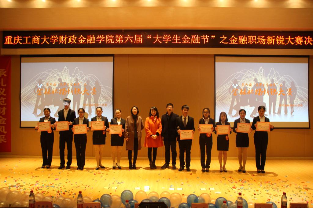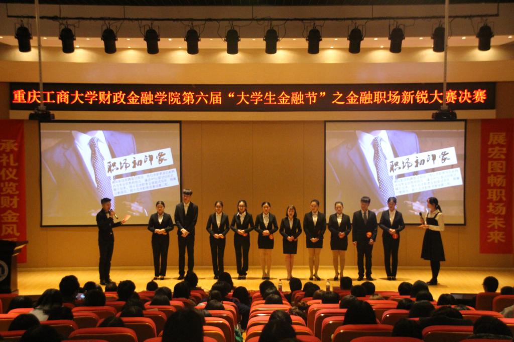 11月24日下午,财政伟德国际1946第六届“老员工金融节”之金融职场新锐大赛于田家炳209报告厅顺利举行。财政金融公司党总支副书记刘代成、重庆银行个人银行部零售业务团队负责人胡荣珍、财政伟德国际1946分团委书记徐阔、员工第三党支部书记范乐乐、员工第四党支部书记乔明月、学科竞赛指导老师余红霞以及各公司员工会主席团代表共同出席本次比赛。