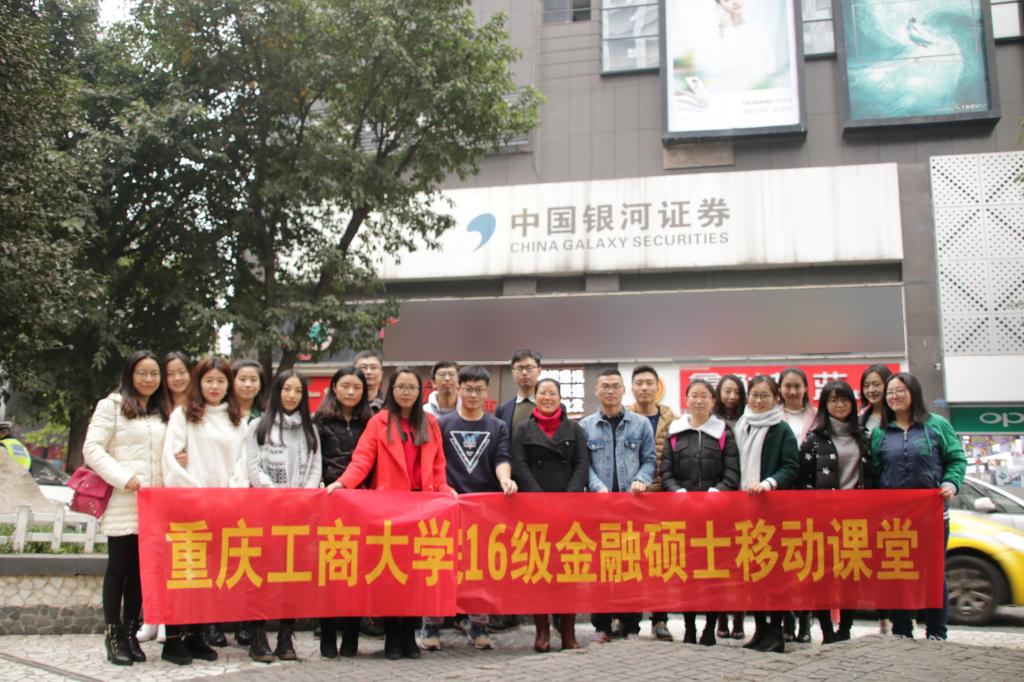 2016年11月28日上午,重庆工商大学2016级金融专业硕士公司在任课老师骆志芳教授的带领下,走进了位于南坪江南大道的中国银河证券股份有限公司,开展了金融市场与结构课程移动课堂。