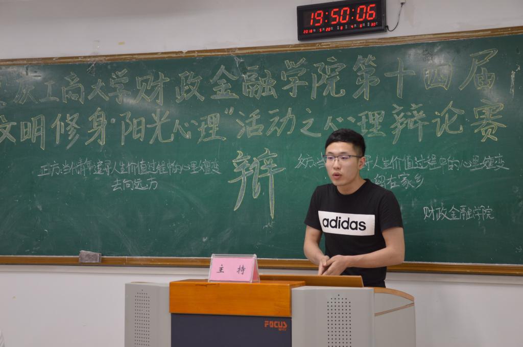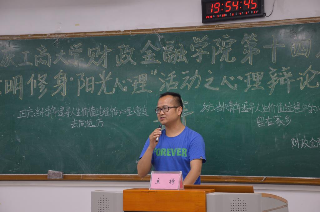 为推动公司员工心理健康工作的发展,营造积极向上的校园文化氛围,重庆工商大学财政伟德国际1946于2018年5月20日19点在博智楼07405举办了第十四届“文明修身·阳光心理”系列活动之心理辩论赛。财政伟德国际1946研究生党支部书记杨宁老师和员工第一党支部书记文理老师莅临比赛现场,重庆工商大公司辩论队队长张桂旗、国际商公司辩论队队长黄雯以及会计公司辩论队队长谭智杰担任本次比赛的评委。