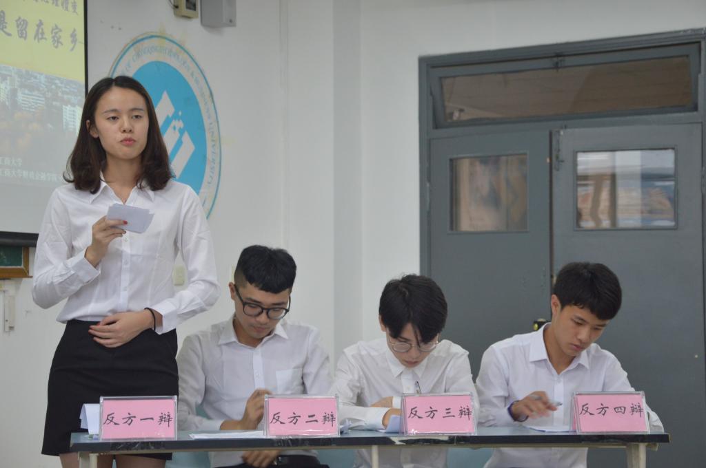 本次比赛共分立论,盘问,驳论,攻辩,自由辩,总结陈词六个环节,双方辩手以“当代青年追寻人生价值过程中的心理嬗变:去向远方/留在家乡”为辩题展开辩论。立论环节双方提出观点,步步深入;攻辩环节,辩手以周密逻辑发问和反驳,字字铿锵;结辩环节,各方辩手言辞简练,立场明确。双方辩手你来我往,互不相让,以文明之态,辩前程去向。他们用幽默诙谐的语言表达,生动形象的举例比喻,镇定自若的参赛风度,天衣无缝的团队合作,赢得在场观众的阵阵掌声。辩论结束后,评委开始点评,首先校辩论队队长张桂旗赞扬了本场比赛各位辩手的优秀表现同时也针对辩题中双方辩手遗漏的问题进行了指点。之后杨宁老师进行点评,他提到:老员工心理健康,擅辩就是其中一项,选择这样一个辩题就是想让同学们思考理想就业的真正含义。他表示本次活动切入主题,对同学们的现实生活有良好的指导意义。