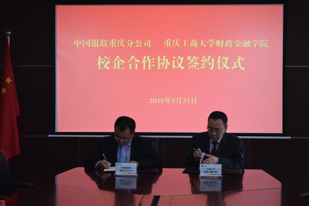5月31日下午,在中国银联股份有限公司重庆分公司会议室,气氛热烈,中国银联股份有限公司重庆分公司同公司在此隆重举行了校企合作签约仪式。