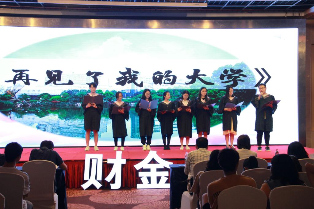 主持人的开场之后,财政伟德国际19462019届各专业精心准备的节目纷纷登上舞台。不仅有精彩的合唱《MoonLight》,还有激情的朗诵《再见了我的大学》,每字每句化为最甜美的回忆,道不尽的是对大学的依依不舍。税收学的同学们带来让全场沸腾的舞蹈《Kill This Love》,此时此刻,他们用年轻、激情、动感与活力铸就了全场最亮丽的风景。保险学的同学们在《写在离别的渡口》唤起新的希望,而财政学的男女对唱《想把我唱给你听》唤起了大家对青春最美好的遐想,爱情是甜蜜的,校园里的青涩和懵懂更令人沉醉。激情无限,青春无悔,投资学同学带来的歌曲串烧将晚会的气氛推向又一个高潮。高潮之后又是惊喜,重庆工商大学十佳歌手刘祥广带来的歌曲《知足》,歌声醇厚动人,台下不知何时,已经响起了同学们的和声齐唱。最后,老师和同学们纷纷走上舞台,摇动着双手,轻轻哼唱着那首《朋友》,四年时光,所有的邂逅或者相识,都沉淀为最深厚的友情。
