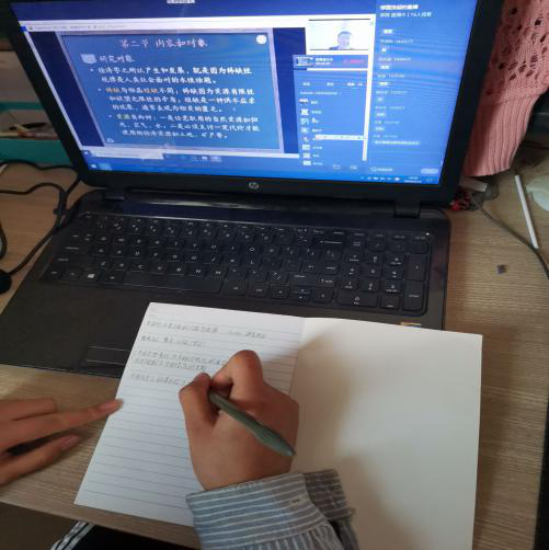 课程中直播平台网络运行顺畅,偶尔出现卡顿的问题也可以及时解决。透过屏幕,同学们真切地感受到老师们为提供高质量线上教学所付出的辛劳。虽然大家相距遥远,但线上课程的学习让我们团结一心,紧密相联。
