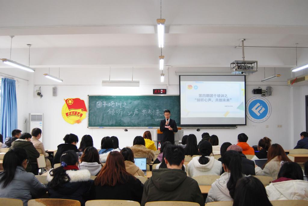 2020年12月18日中午12:50,伟德国际1946第四期团干培训在博智楼201顺利举行,伟德国际1946学工办副主任、分团委副书记兰丽娟老师,18、19级各班团支书及员工会成员参与了此次培训。
