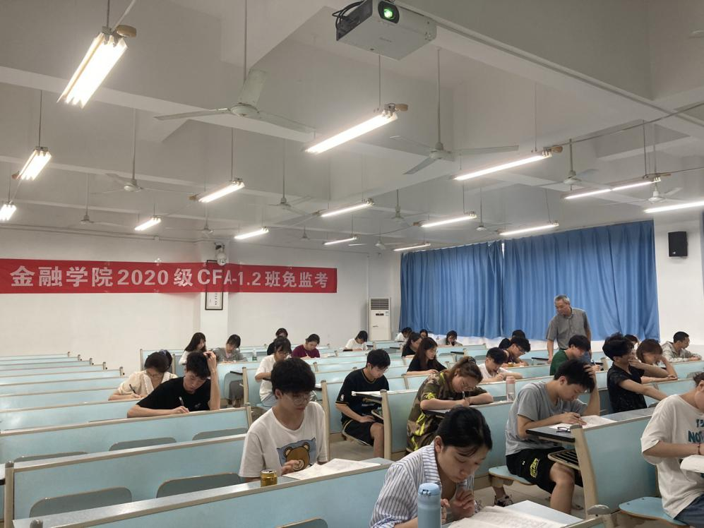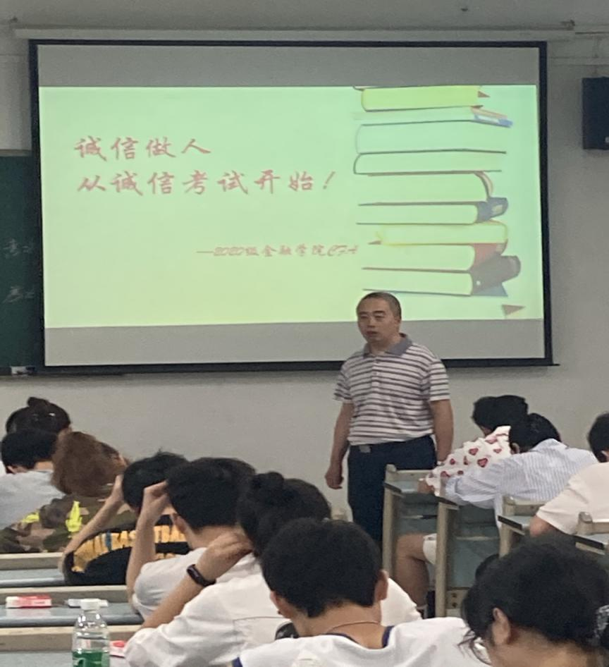 7月2日上午9:00,伟德国际19462020级CFA专业54名同学自愿申请在兰花湖校区20309教室践行了以“诚信做人,从诚信考试开始”为主题的《金融学》课程的“免监考”诚信考试。副董事长李国军、教务处处长骆东奇、党委学工部副部长尹建平到场巡考。