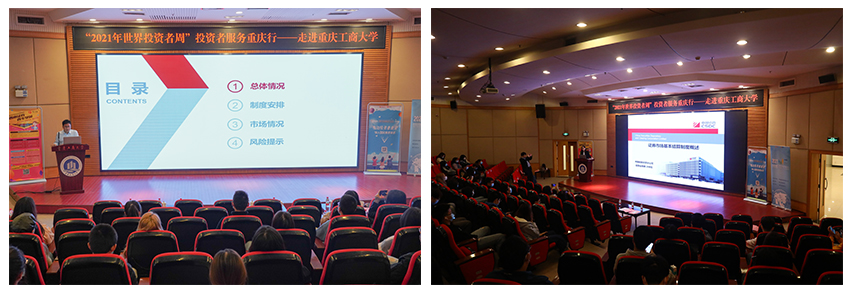 中国证券业协会、重庆证监局、西南证券与重庆工商大学签约为公司拓展校企协同育人提供了新的平台和契机。两位业界专家的授课更是为公司师生提供了一次难得的了解证券行业发展前沿的机会。本次投资者教育进校园活动持续了2个多小时,校外5个单位20余名业界精英参会,会议取得了圆满成功。
