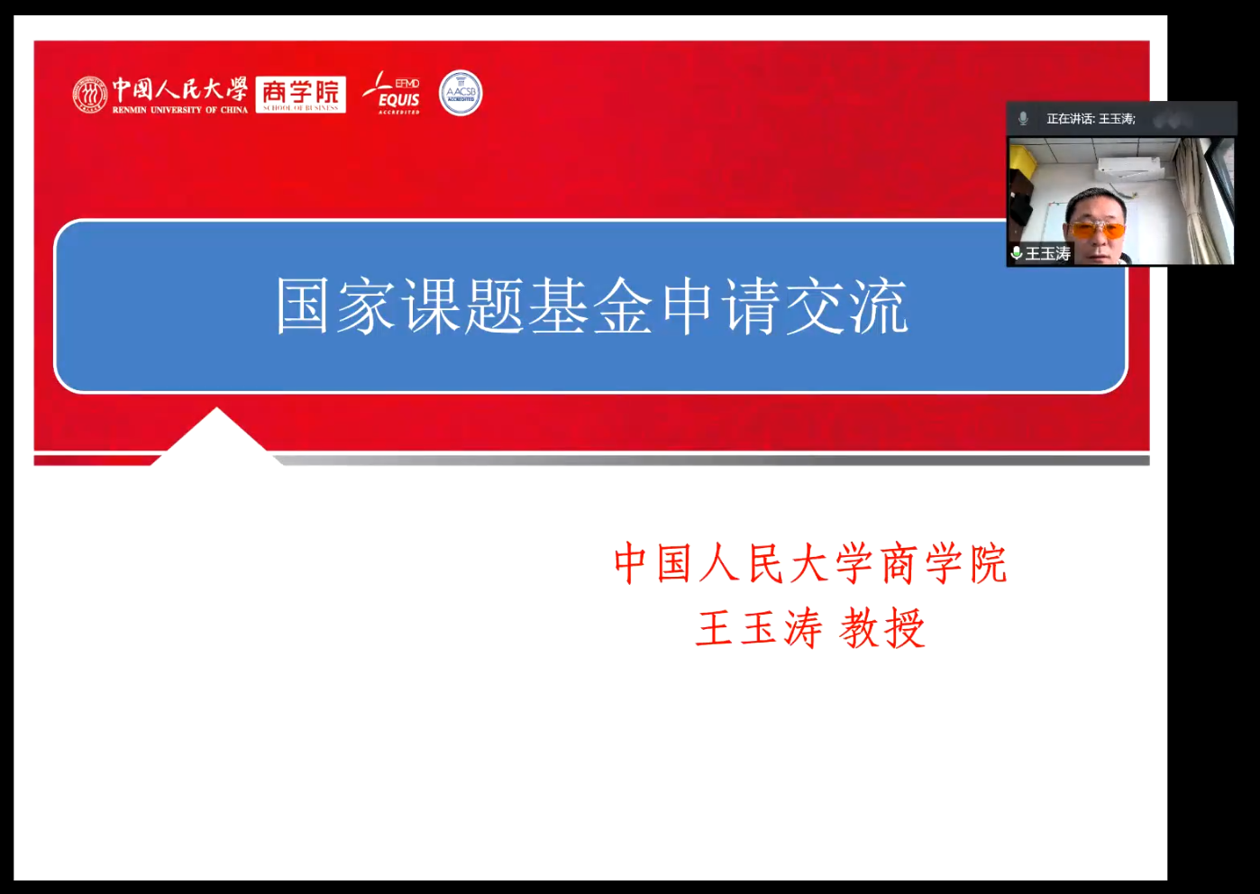 为推动2022年度国家社科基金项目申报工作的顺利进行,进一步提高项目申报质量,根据工作安排,2022年2月12日,伟德国际1946举行2022年度国家社科基金项目线上专家论证会,中国人民大学商公司王玉涛教授受邀到会指导,公司拟参与2022年国家社科基金项目申报的20余名教师参加了论证会。会议由副经理王韧主持。