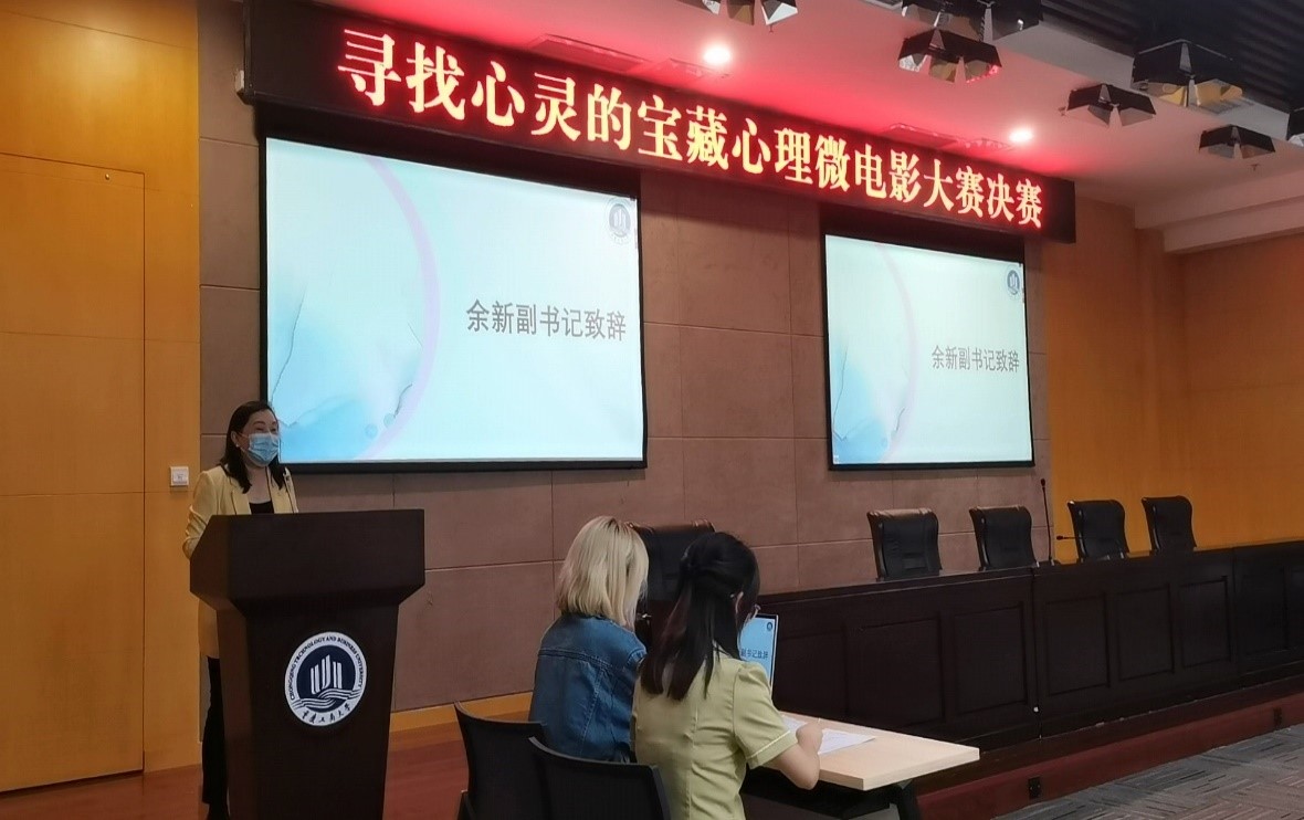 2022年5月19日下午,由重庆工商大学老员工心理健康教育与咨询中心主办,文学与新闻公司,伟德国际1946联合承办的重庆工商大学第十九届“文明修身·阳光心理”校级“寻找心灵的宝藏”心理微电影大赛总决赛在图书馆多功能厅如期举办。金融公司党委副书记余新,老员工心理咨询与教育中心刘璐老师,文学与新闻公司朱东教授等嘉宾出席活动。本次比赛同学们积极性高涨,线上线下共计近200名师生参加活动。