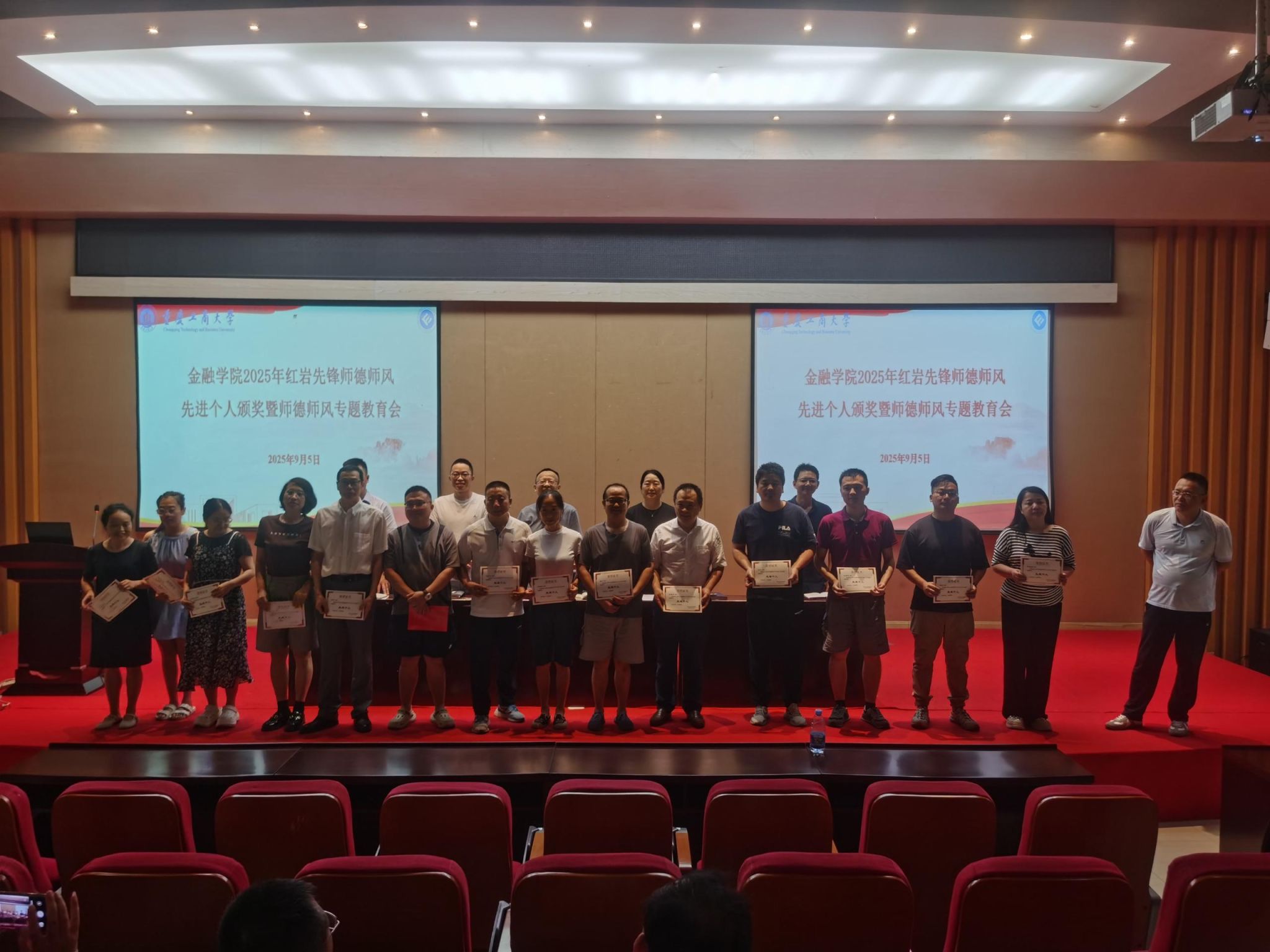 9月5日,伟德国际1946在田家炳209召开2025年度“红岩先锋师德师风先进个人”表彰暨师德师风专题教育会,全体教职工参会。会议由党委书记、副经理石世明主持。