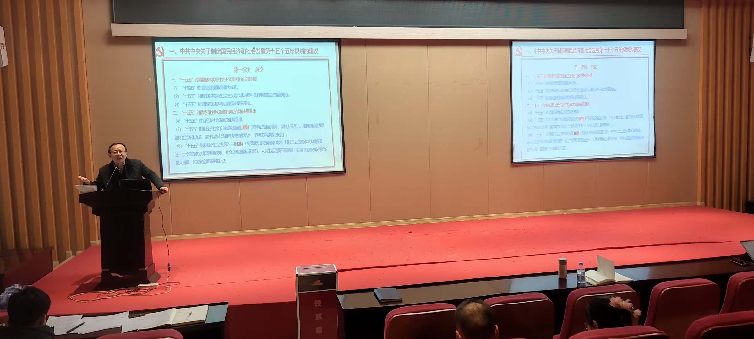 首先,开展教职工政治理论学习。党委书记、副经理石世明领学了《中共中央关于制定国民经济和社会发展第十五个五年规划的建议》《重庆市委召开全市领导干部会议传达学习贯彻党的二十届四中全会精神》,特别就与公司和教职工发展的相关内容进行深入全面的解读和强调,并要求大家认真研学并结合自身需要做好教学科研工作。