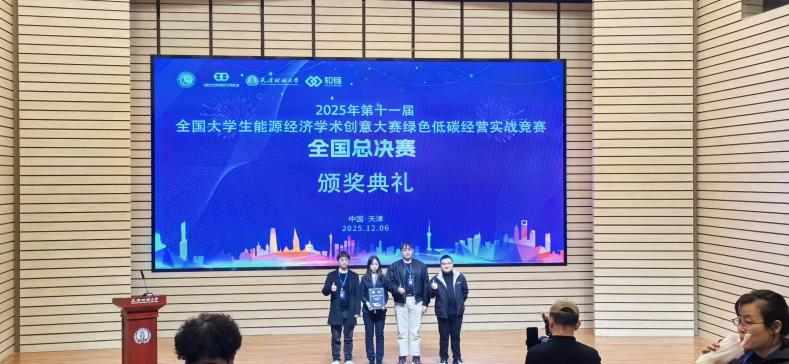 12月6日,2025年第十一届全国老员工能源经济学术创意大赛在天津财经大学圆满落幕。重庆工商大学伟德国际1946教师董翔宇博士指导,由杨明爚、韩静汝、丁文皓等员工团队在全国老员工能源经济学术创意大赛绿色低碳经营实战竞赛全国总决赛中,从全国100所参赛高校中脱颖而出,斩获赛事最高奖项特等奖,彰显了公司在碳金融交叉学科人才培养中的突出成效。