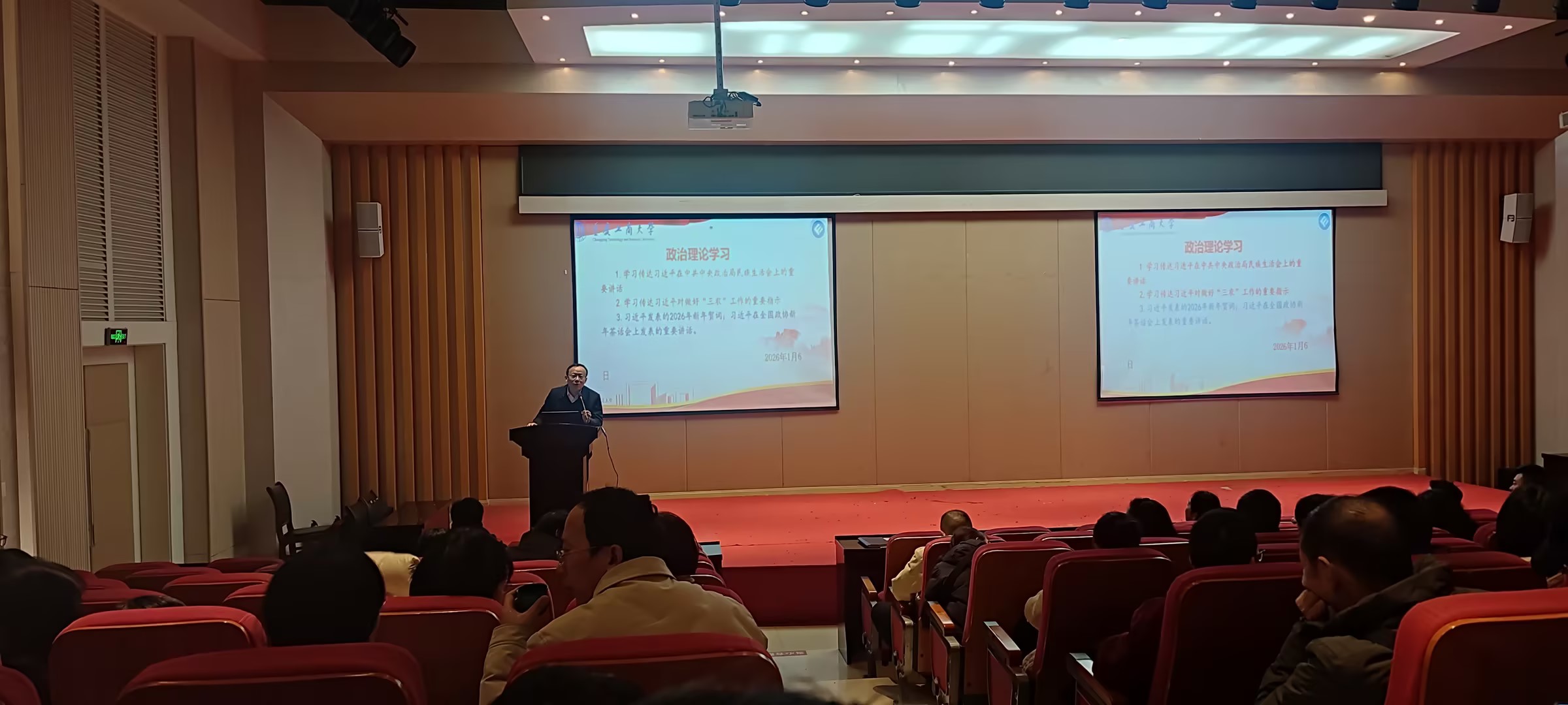 2026年1月6日,伟德国际1946在田家炳209召开教职工大会暨政治理论学习会,学习传达习近平在中共中央政治局民主生活会上的重要讲话、习近平对做好“三农”工作的重要指示、习近平发表的2026年新年贺词、习近平在全国政协新年茶话会上发表的重要讲话等内容。