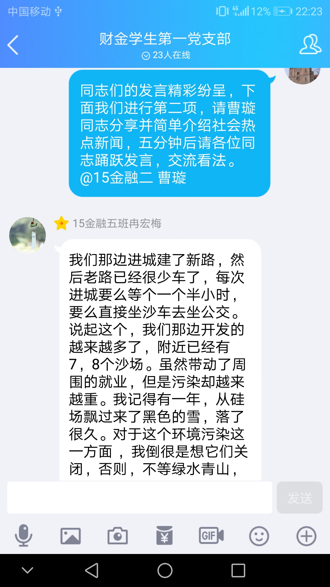 针对这两项学习内容,同志们经过缜密思考,冷静分析,在交流群中纷纷表达自己的想法。