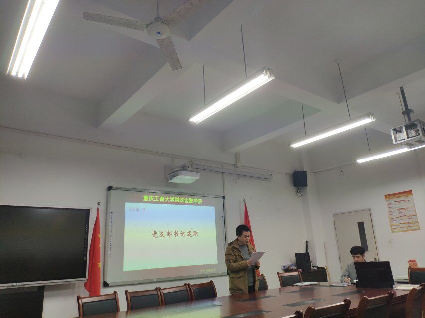 2018年12月13日下午5点40,重庆工商大学财政伟德国际1946分党委员工第一党支部在田家炳306召开了12月的第一次支部大会,会议由林秋梦同志主持,员工第一党支部书记文理列席会议。本次会议的主要内容有:1.学习习近平主席在全国教育大会、生态保护大会以及全国宣传思想工作会议上的重要讲话;学习习近平主席给中央美术公司老教授的重要回信;2.学习以黄群、宋月才、蒋开斌同志为代表的抗灾英雄群体和王继才同志的先进事迹;3.观看《“五毒俱全”破法纪,歧途末日终自毁》警示教育片;4.党支部书记文理进行述职报告及党员民主评议。