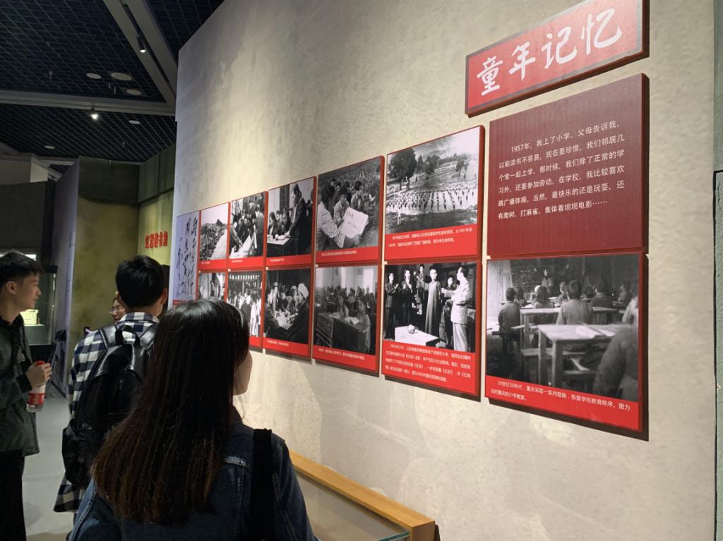 展览以主人公「国强」的个人成长经历为主线,分为新生、青春、家业、小康四个阶段。展厅现场复原了具有不同时代特征的场景,如1950-1960年代的老虎灶、坝坝电影,1970年代的知青卧室、供销社、婚房,1977年恢复第一届高考的教室,1990年代的家庭布置等。