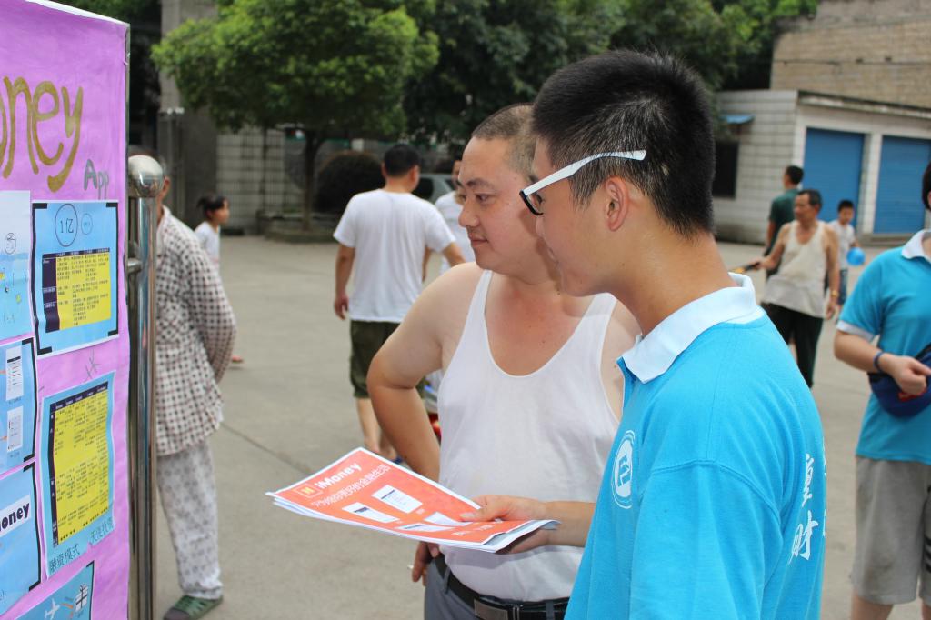 此次展示的作品涵盖了从重庆工商大学投资管理决策大赛中脱颖而出的创业项目和重庆创业家协会的项目。面对“ictbu”、“ imoney”、“快收”、“开普敦计划”、“诚客兼职”这些新颖的作品,当地民众聚集在各式展板前驻足观看。精心制作的视频、简明的海报以及服务团成员接地气的讲解,揭开了老员工创业项目在基层民众的神秘面纱。其中,极具便利性和环保性的“快收”,博得了在场民众的认可。“你们老员工很有想法,这台机器什么时候能到我们龙桥呢?”另外,“微商”“二手市场”等话题引起了在场民众的共鸣和热烈讨论。不少小朋友对这些新奇的事物产生了浓厚的兴趣,尽管他们对创新创业还缺乏足够的认识,但强烈的好奇心驱使他们凑到展板前,提出各种天马行空的问题,而这些问题正是小朋友们创新思维的萌芽。