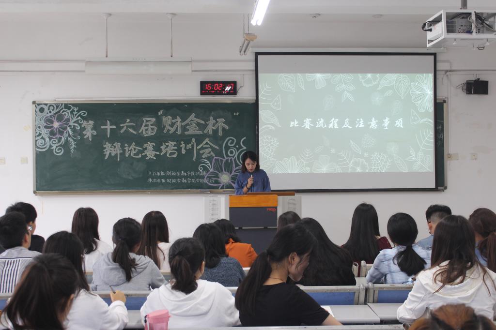 首先,胡睿洁部长为各位参会人员简要介绍了本次“财金杯”辩论赛的比赛流程:本次比赛共分为赛前培训、初赛、复赛第一轮、复赛第二轮、半决赛和决赛及表演赛六个部分。另外,主持人还提出了注意事项,涉及赛前准备、赛后抽签等方面。