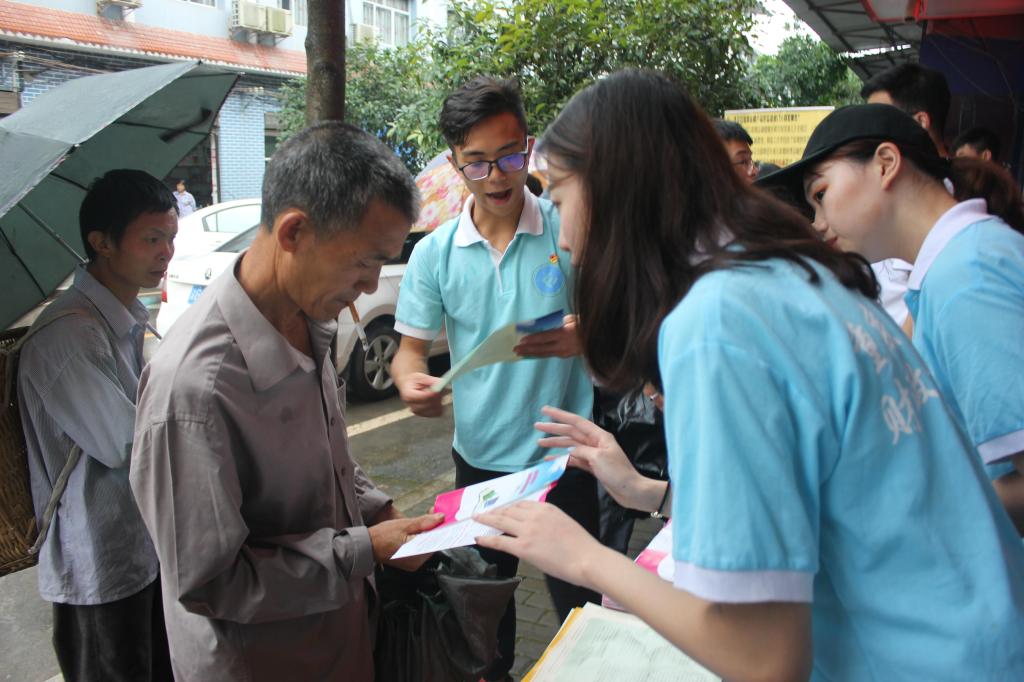 调研团成员向当地乡民讲解金融防骗知识