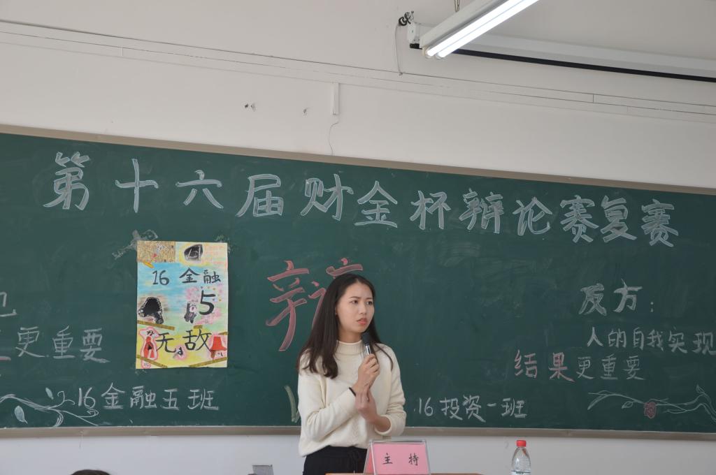 2017年10月27日下午,第十六届“财金杯”辩论赛复赛在博智楼502、503、504教室成功举办。16级金融五班、16级投资一班等六支参赛队伍分别作为正反两方,就“人的自我实现,过程/结果更重要”这一辩题展开了激烈的辩论。财金公司分团委员工会主席团、财金公司辩论队代表团作为评委嘉宾出席本次比赛。