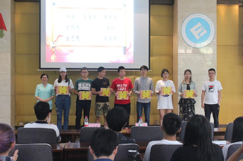 此次表彰大会上首先致辞的是徐阔老师,他简单地回顾了校运会上运动员们的精彩表现后,对运动员们的努力以及成绩作出了肯定。紧接着体育部部长滕丹妮对本次校运会中财金公司的表现情况作出了总结。她指出,正是因为运动员和后勤人员都做好了充分的赛前准备,财金公司才能在校运会中取得佳绩。随后,方阵标兵代表方姿斌、体操标兵代表朱杰、体育之星代表吴星成、优秀工作者代表石浩、杰出贡献个人代表刘志华为大家分享了他们在此次校运会中的感想。最后进入了万众期待的一刻,方阵标兵、体操标兵、先进新闻工作者、先进宣传工作者、优秀工作者、优秀组织者、杰出贡献个人、“风采之星”与“体育之星”在主持人的宣布下一一揭晓,大家都在为他们表示祝贺。最后,大会在由获奖者和嘉宾的大合影下圆满结束。