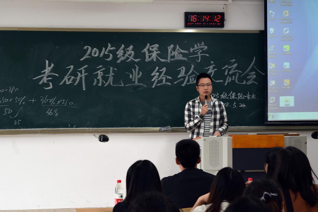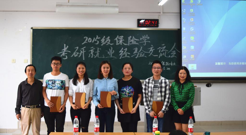 对于当前严峻的社会形势和繁重的就业压力,即将步入大四和面临毕业的同学们,有着各种各样的考虑和选择——考研、出国或就业。但不少人对于以上选择方向仍存在误区、不解、甚至是困惑,这些将会影响到同学们的日常学习和生活,甚至身心健康。为了帮助大家看清形势,解除疑惑,端正态度,明确未来发展方向及掌握更多的信息。重庆工商大学财政伟德国际1946保险系于2018年5月24日在七教201教室举办了“考研就业经验分享交流会”。