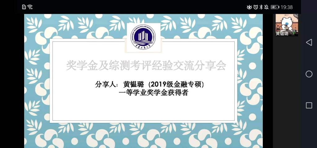 为了提升员工综合素质,增强同学积极性,树立明确的目标,确定努力的方向,帮助同学充实校园生活。重庆工商大学伟德国际1946研分会在2020年11月29日晚上7:00邀请到年度获取一等奖学金或者国家奖学金的高媛等五位优秀的学长学姐通过线上形式(企业微信)进行了主题为《伟德国际1946奖学金及综测考评经验分享会》的分享会活动。2020级金融学硕、2020级金融专硕等40余人参加了此次分享会。活动由研分会的组织部人员主持。
