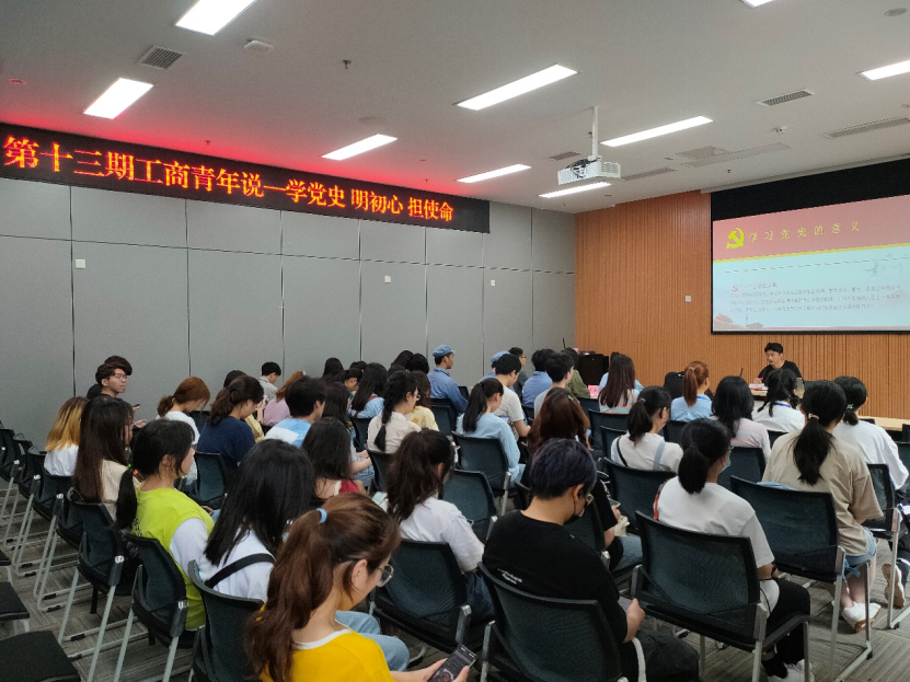 为扎实推进党史学习教育,厚植爱党爱国情怀,5月14日下午14点,由校团委主办、伟德国际1946分团委员工会承办的第十三期“工商青年说”在图书馆第二会议室准时召开。