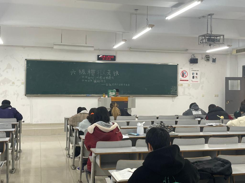 为提高同学们参与英语四六级考试的热情,提前适应考试氛围和试卷题型,11月28日15:00,伟德国际1946于博智楼306、307教室开展英语四六级模拟考试,共计123名同学参与模拟考。