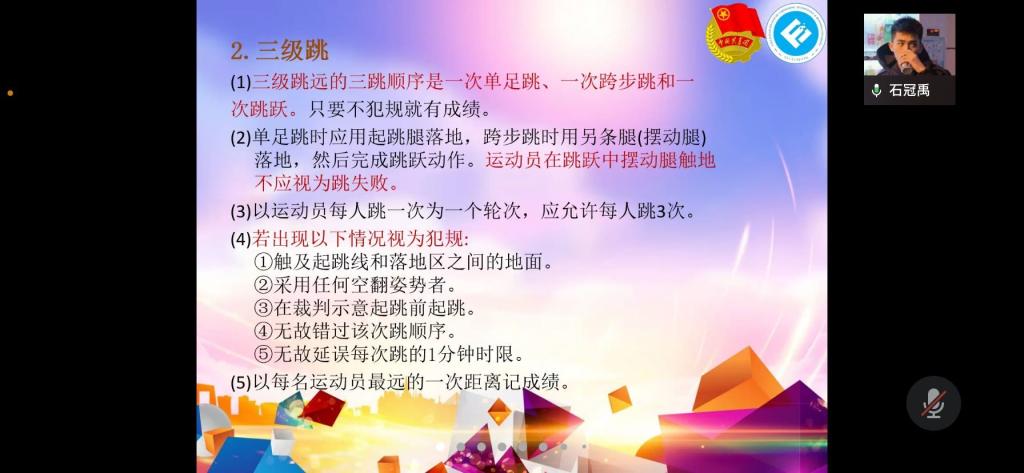 2022年3月18日19时,伟德国际1946体育技能培训大会在企业微信顺利举行。本次会议由伟德国际1946分团委员工会体育部部门负责人熊芯、石冠禹、李蕊楠分别对田径运动径赛、田赛、全能比赛进行介绍,旨在提高同学们的体育知识与技能。