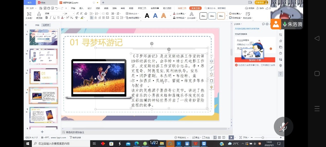 清明节是我国传统的重大节日,扫墓祭祀、缅怀祖先,是中华民族自古以来的优良传统,不仅有利于弘扬孝道亲情、唤醒家族共同记忆,还可促进家族成员乃至民族的凝聚力和认同感。但在节日来临之际,难免有同学思念已故亲人,产生悲观、消极的情绪。为促进同学们树立积极向上、乐观勇敢和正确面对人生的心态,同时为员工搭建起锻炼心理承受能力、提高心理素质水平,2022年4月3日下午,伟德国际1946心理工作站通过企业微信线上平台举办了一场以“请你记住我,爱不会消失”为主题的电影展播活动。