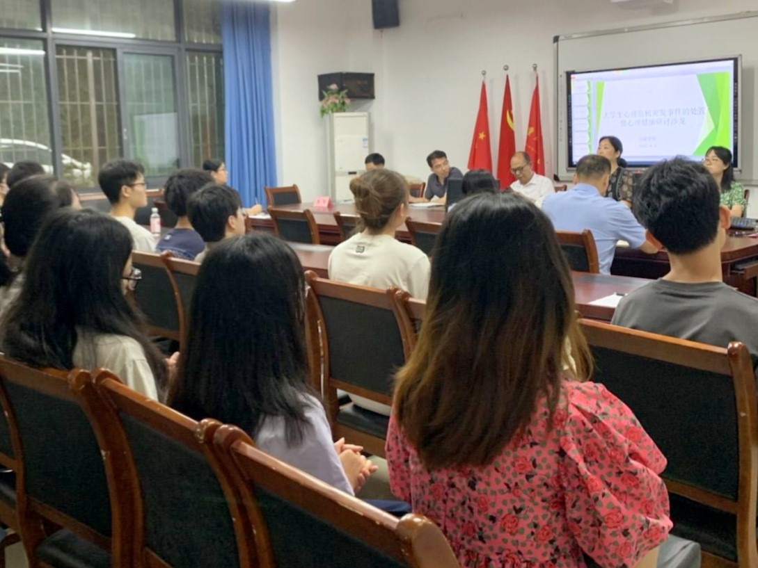 会议最后,由嘉宾莫丽萍老师向大家分享了心理健康教育工作经验并进行研讨交流。她提到老员工心理健康问题不仅关系到员工个人成长,还关系到整个社会和民族未来的发展。莫老师用“关爱”两字进行总结,并对在座心理委员们提出了殷切期望,希望每个心理委员能够关爱身边的同学,有效处理突发危机事件。
