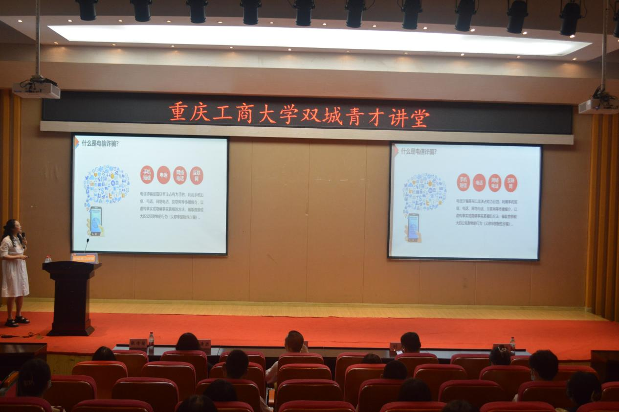 2022年6月14日下午14:00,由共青团重庆市委、重庆市学联主办,重庆工商大学团委、伟德国际1946分团委承办,重庆市证券期货业协会、西南证券股份有限公司协办的“双城青才讲堂”走进公司,在田家炳209报告厅开展防范电信诈骗及《股东来了》投资者权益知识竞赛宣讲活动。共青团重庆市委高校部程潇乐、重庆市证券期货业协会秘书长王跃、西南证券运营管理部副总经理刘翔、西南证券运营管理部投教专员张倩楠、西南证券第二分公司投教专员何璐以及伟德国际1946学工办主任、分团委书记兰丽娟出席了活动。