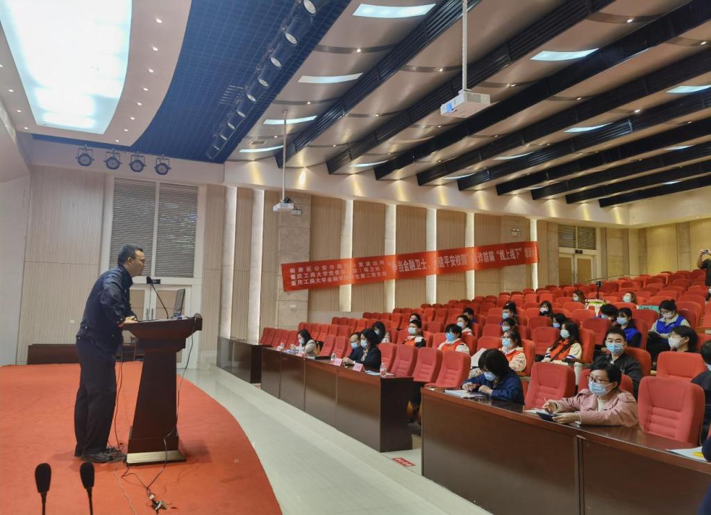 2022年10月28日,为普及防范诈骗知识,进一步提升员工的反诈防骗能力,南岸区公安分局四公里派出所、重庆工商大学党委保卫部(保卫处)以及伟德国际1946在田家炳209报告厅联合举行“争当金融卫士,共建平安校园”反诈防骗“线上线下”培训会。重庆市南岸分局四公里派出所警官刘国魁,公司党委保卫部副部长(保卫处副处长)曹晓丽,金融公司党委书记、副经理石世明,金融公司党委副书记、纪委书记余新,金融公司党委委员、专职组织员赵甫刚及全体辅导员老师出席了培训会。“金融卫士”团队及员工第二党支部(双创)代表参加了现场培训,其他同学同步线上观看直播。