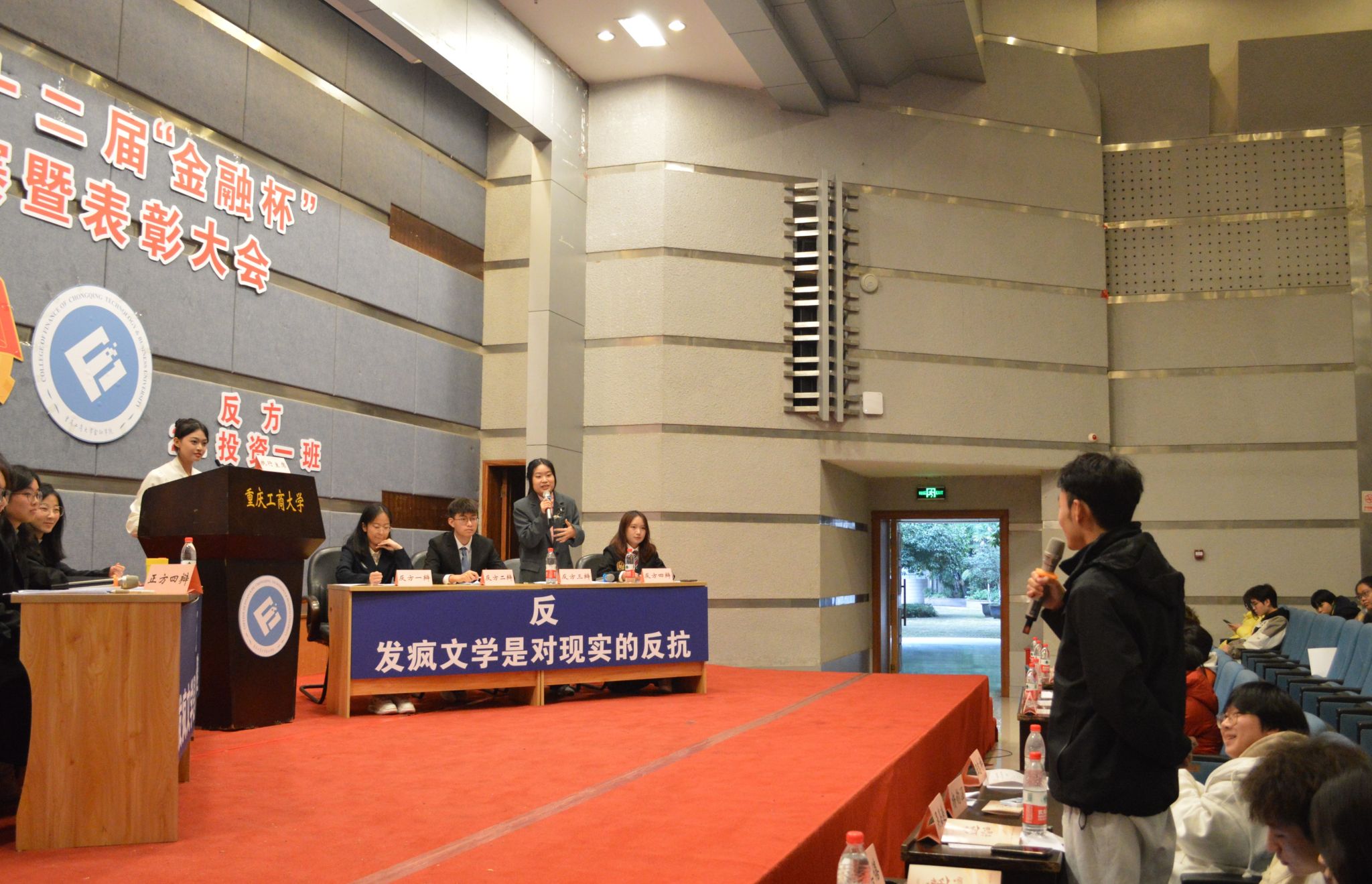为了增强观众体验感,伟德国际19462023级辩论队为大家带来了以“发疯文学是对现实的逃避还是对现实的反抗”为辩题的辩论表演赛,同样精彩绝伦,引得观众拍手叫好!最后,大会对优秀辩手和获奖队伍给予表彰并颁发奖状。