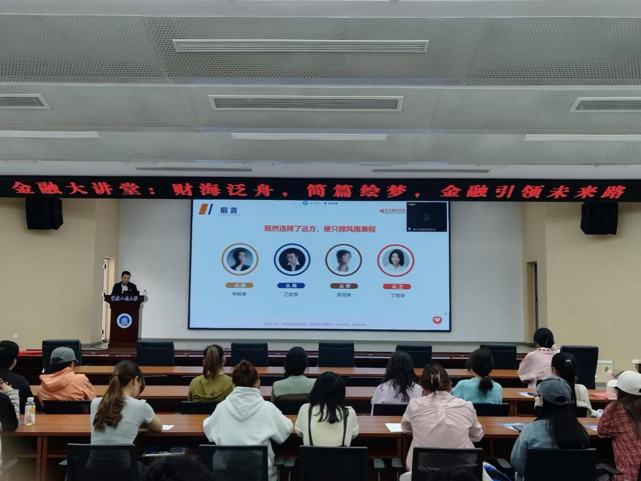 杜力还详细介绍了证券公司、基金公司、保险公司等金融机构的业务范围和岗位职责,帮助同学们更好地了解金融行业的就业前景和发展方向。他鼓励同学们积极投身金融行业,为我国的金融事业贡献自己的力量。