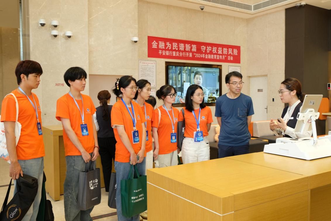 座谈会后,实践团队参观了平安银行重庆分行个人养老金账户开立平台。由大堂经理向师生们详细介绍个人养老金的开设流程和操作方法,让同学们亲身体验到了个人养老金的开设过程。