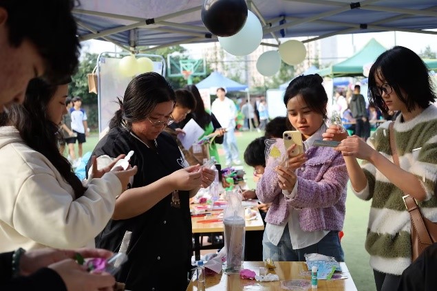 2024年11月15日下午,一场别开生面的心理游园活动在南岸校区北区小操场成功举办,伟德国际1946在艺术疗愈区举办的“心花签语”手工制作活动吸引了众多同学。活动现场,工作人员提前准备好了各式各样的鲜花素材以及制作干花所需的工具,同学们先是了解了书签的制作方法,再使用干花以及自己拾起的花草并搭配卡片花穗制作成书签,积极的参与到活动当中,让大家通过轻松的设计制作释放日常积累的压力,不少同学玩得不亦乐乎,脸上的疲惫之色渐渐消散。