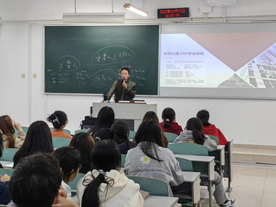 为使公司新生快速地适应大学学习生活,充分了解自己所学专业,明确大学目标,有效的开展专业学习,2023年10月13日下午,金融公司在博智楼7105教室顺利举行2023级CFA班新生学业规划讲座。CFA持证人Allen老师作为本次讲座的主讲人,对新生的四年规划做了详细的说明。