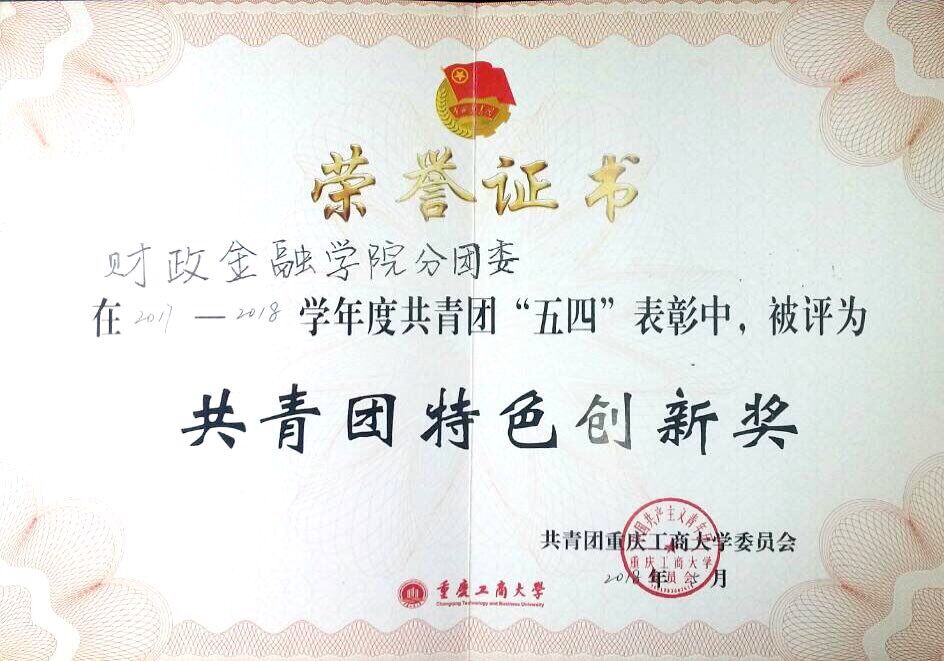 活动在嘹亮的团歌中拉开序幕,党委书记李春茹教授为活动致辞。随后,校团委副书记杨娟宣读了共青团2017-2018学年先进集体和个人。财政伟德国际1946分团委荣获“五四红旗团委”、“共青团特色创新奖”,公司分团委员工会荣获“优秀员工会”,公司“星火”义协荣获“优秀义工志愿者分会”,金融证券协会、贲育足球社荣获“优秀社团”,2016级金融学专业一支部荣获“五四红旗团支部”,2016级保险学专业二支部、2017级CFA专业二支部荣获“先进团支部”,分团委书记徐阔老师被评为“优秀分团委书记”,扈甜甜同学被评为“共青团标兵”。