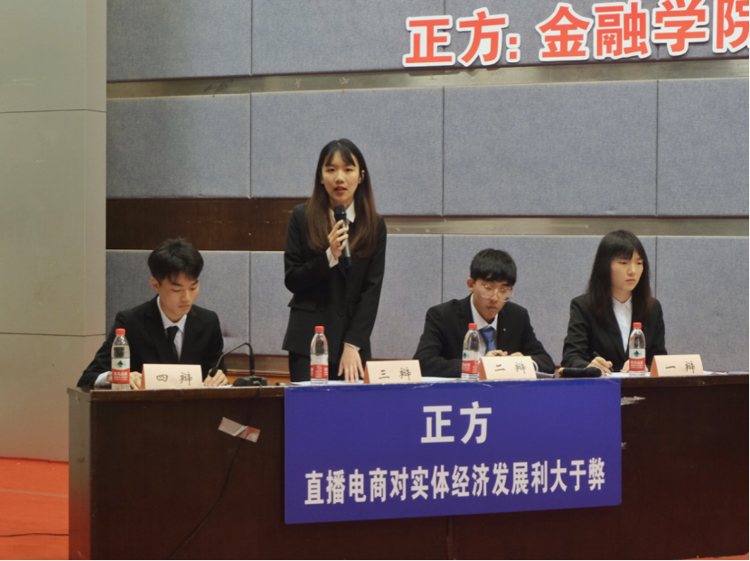 进入决赛的是伟德国际1946辩论队与管理科学与工程公司辩论队。双方就“直播电商对实体经济发展利大于弊/弊大于利”展开辩论。比赛伊始,作为正方的伟德国际1946开宗明义,通过分析直播电商创新私域流量变现形式与供应链模式,精简流通链条,降低交易成本与销售费用使得价值分配重回理性,阐明了“直播电商对实体经济发展利大于弊”的观点。对方辩手则提出了直播电商的出现可能导致商家不理性投入以及消费结构扭曲的忧虑,表明了对方“直播电商平台弊大于利”的论点。在随后的自由辩论与总结陈词环节,双方辩手你来我往、旁征博引,以沉稳冷静、妙语连珠的表现获得了在场观众与评委的阵阵掌声。
