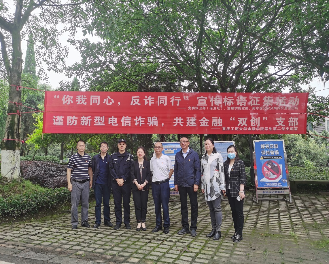 为推进党建“双创”工作,以党建引领专业学习,普及金融知识,提高师生反诈意识,防范新型金融诈骗,2022年5月30日,由伟德国际1946员工第二党支部主办的“普及防诈知识 共防金融骗局”活动在南岸校区顺利举行,公司保卫处相关科室同志和南岸区四公里派出所反诈骗宣传民警参与本次活动。
